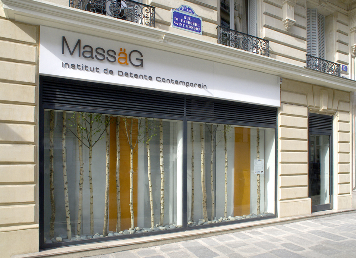 Cet institut est le flagship store de l'enseigne MassäG. Le concept et la charte nordique-contemporaine définis par Scalaa architectes a su lancer la première boutique et la marque au point de solliciter à nouveau l'agence pour l'ouverture d'une seconde adresse, MassäG & Aesthetics, 4 ans plus tard.